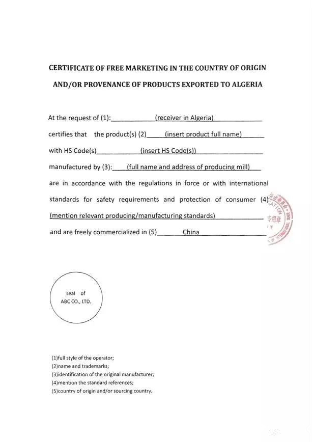 出口產(chǎn)品不在這851項(xiàng)之列的小伙伴也不要大意,阿爾及利亞商務(wù)部出臺新規(guī),對我國出口至阿的貨物要求提供原產(chǎn)國有權(quán)機(jī)構(gòu)蓋章的“自由市場證書”(The certificate of free marketing in the country of origin),在阿方銀行備案后方可獲得其為我企業(yè)開具的信用證。