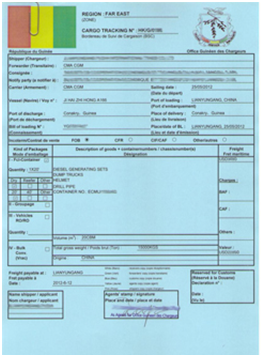 根據(jù)幾內(nèi)亞港務(wù)局要求:針對(duì)發(fā)往幾內(nèi)亞的貨物,必須辦理幾內(nèi)亞CTN NO.(貨物跟蹤號(hào)碼),否則在起運(yùn)港船公司無法正常出具海運(yùn)提單,目的港將無法清關(guān)和提貨。幾內(nèi)亞CTN NO.和尼日利亞CTN NO.類似,CTN NO.是英文Cargo Tracking Note Number的首字母縮寫,意思是貨物跟蹤號(hào)碼,又稱為貨物進(jìn)口清單。